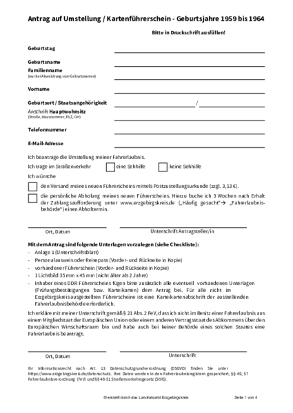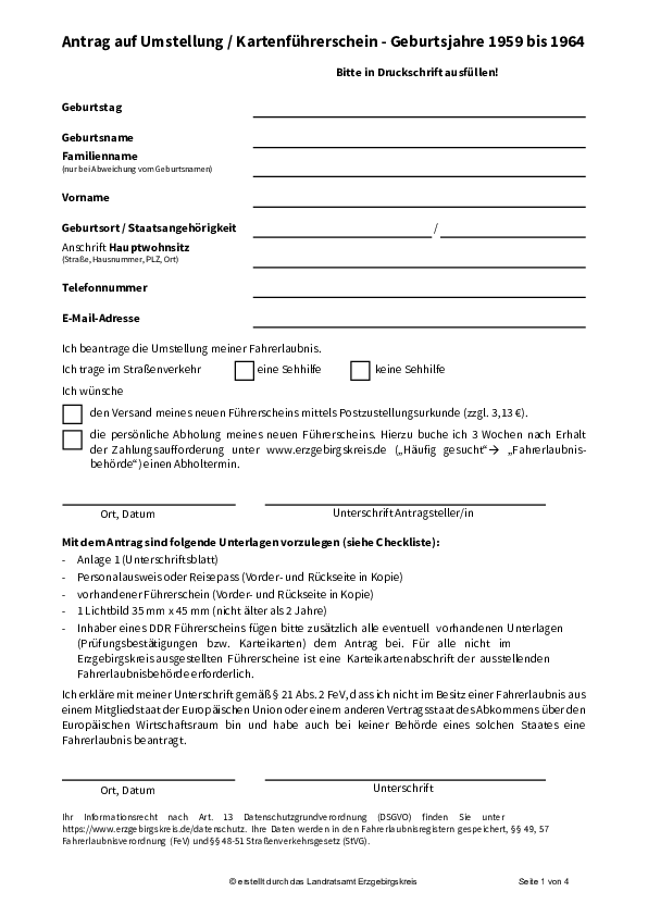 Umtausch der Führerscheine der Jahrgänge 1959 bis 1964