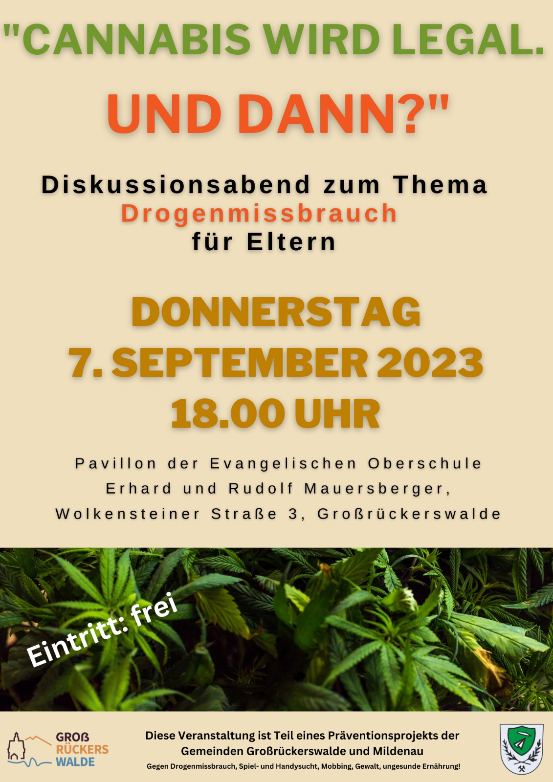 Großrückerswalde/Mildenau. Die beiden Gemeinden Großrückerswalde und Mildenau haben ein gemeinsames Sucht-Präventionsprojekt auf die Beine gestellt. Darin sind auch mehrere Vereine eingebunden. Mit verschiedenen Veranstaltungen werden Probleme, die mit Suchtverhalten einhergehen, angesprochen. Dazu gehören der Missbrauch von Drogen, die Spiel- und Handysucht, Mobbing, Gewalt und gesunde Ernährung. Die Hauptzielgruppe findet sich in Kindern und Jugendlichen im Grund- und Oberschulalter wieder. Begonnen hatte es bereits im Mai mit dem Ausstellungsbus “Glück sucht dich”. Die Hauptaktionswochen bilden aber die beiden ersten im September. Die meisten Veranstaltungen richten sich wie der Bus ausschließlich an die Schülerinnen und Schüler. Andere sind für jedermann öffentlich zugänglich. Dazu gehört die Konzertlesung mit Samuel Rösch am 2. September im Gasthof Mildenau. Nähere Informationen dazu werden im Sekretariat der Grundschule unter 03735 64253 erteilt. Am 4. September sind alle Interessenten ab 18 Uhr im Pavillon der Oberschule zu einem Diskussionsabend eingeladen. Daran teilnehmen werden unter anderem Dr. Ralf Rasch vom Erzgebirgsklinikum, Uwe Wicha vom Drogentheapiezentrum in Großrückerswalde, Nicole Diener von der Diakonie Marienberg, ehemalige Klienten der Drogentherapieeinrichtung sowie Vertreter der Polizei. Bereits am 1. September findet für die 8. Klassen der Evangelischen Oberschule Erhard und Rudolf Mauersberger ein weiterer Projekttag mit dem Verein “Run and gone” statt. Dieser ist in Fragen Drogenprävention an vielen Schulen unterwegs. Einige seiner Mitglieder zählen zu den ehemaligen Klienten des Drogentherapieeinrichtung und nehmen jedes Jahr am Gassenlauf teil. Dabei legen sie den Weg nach Großrückerswalde bereits zu Fuß zurück. Sie berichten den Schülerinnen und Schülern von ihrem Leben. Der Gassenlauf selbst steht schon seit Jahren unter dem Motto “Gemeinsam laufen gegen Drogen”. Er findet ebenfalls am 1. September statt. Für den 4. September ist an der Evangelischen Oberschule ein Spendenlauf geplant . Schüler sammeln Runden laufend Geld. Damit soll ein Projekt für eine “bewegte Pause” finanziert werden. Dabei steht bereits eine Kletterspinne zur Diskussion.