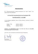 Bekanntmachung der Auslegung des Entwurfes der Haushaltssatzung für das Haushaltsjahr 2025